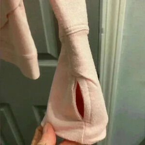 Women’s lightweight pink pullover hoodie thumb holes & a crossover at waist SM