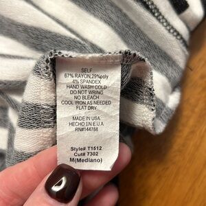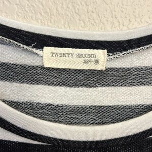 Women’s long sleeve striped shirt with cut out shoulders size medium. The stripes are black and white.