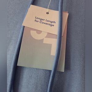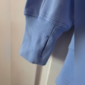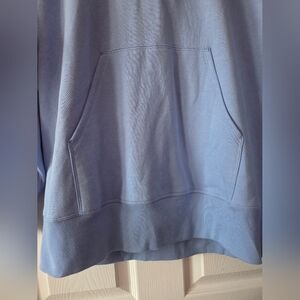 Comfortable blue hoodie with front pocket and drawstring hood. Loose fit and longer length for coverage. Size large, new with tags
