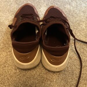 Step up your game with these stylish brown and copper athletic shoes. Perfect for any casual or sporty occasion.