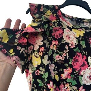 Women’s med floral cold shoulder crew neck soft colorful top