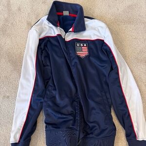 USA women’s blue jacket. USA logo on back and front. Zipper women’s medium