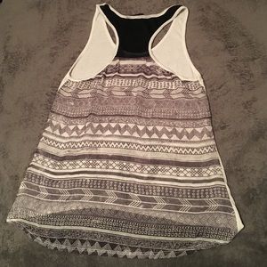 Women's "Workshop" (Zumiez brand) medium dream catcher graphic design tank top. Light and soft fabric on the front. Back of the tank top has a black mesh section at the top and the rest is chiffon fabric with an awesome tribal print fabric. Shirt is in good condition. Worn only a few times and still has a lot left to give to its next owner. Form fitting at the chest and flowy at the bottom. Great for hot weather style!