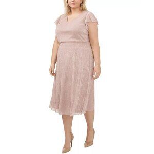 Womens midi Dress blush Pink 1X flutter sleeves MSK