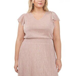 Shimmery party chic in metallic, MSK's plus size midi dress flows into fluttery sleeves and is fitted at the smocked waist.