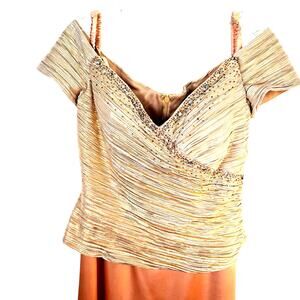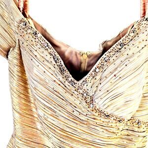 Womens misses formal dress 6 S small pristine beaded gold party