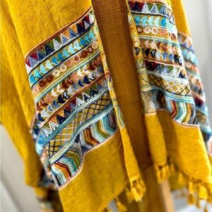 Women's mustard yellow Embroidered geometric tassel Kimono Cardigan