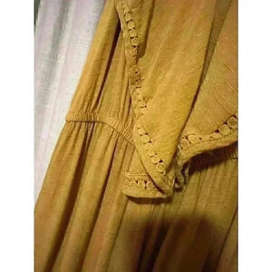 Women’s mustard, yellow jumpsuit. Size medium. Frayed front collar and button back. Loose and flow, very comfortable.