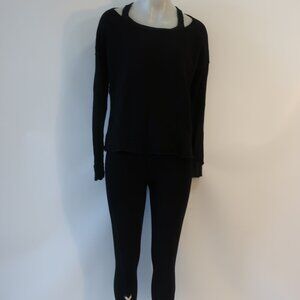 Womens n:Philanthropy Black 2 Pc Jogger Set Sweatshirt Top Lace-Up Sweatpants XS