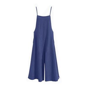 Women’s navy XL Casual Loose Long Bib Pants Wide Leg Jumpsuit romper Baggy Cotto