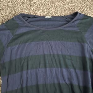 Womens navy & black striped scoop bottoms t-shirt. Crop fit. Super soft. EUC