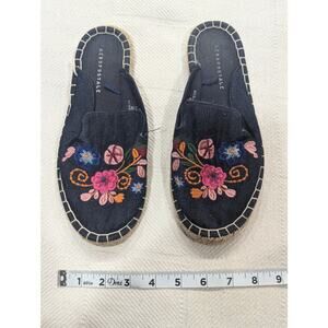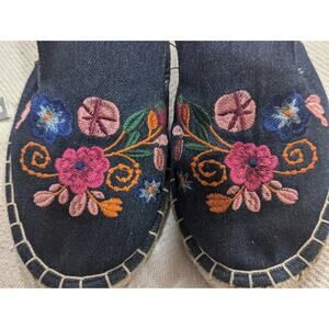 Women's navy floral embroidered espadrille mule slides by Aeropostale size 6 cottage core cutesy Spanish style Indigenous Mexican style Southwestern country pioneer woman style