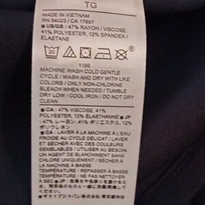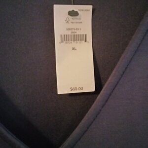Deep navy medium weight knit top. Regular length, around 25". Long sleeve, V-neck, medium non see through weight fabric. Brand new, tags on. Size XL.