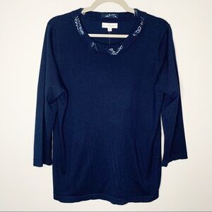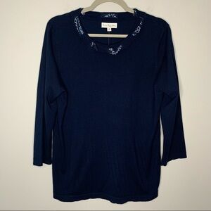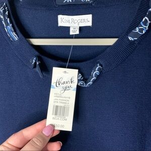 Women’s new Kim Rogers blue knit quarter sleeve blouse size medium M