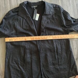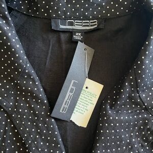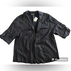 Women’s work jacket short sleeve polka black tab sleeves. Has a tab on back and has pockets. NWT Size 2X