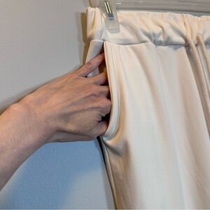 Womens pants elastic waist pockets cream color