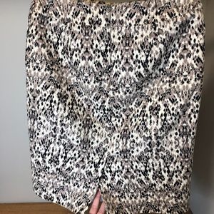 Pattern has black, shades of grey/silver and sand. It’s lined, no holes, tears etc., smoke free home.