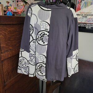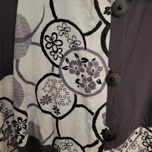 Women's patterned jacket. Large black buttons, 2 hip pockets. Never worn. 100% cotton. Machine wash warm.