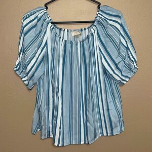 Women’s petite loft blue and white vertically striped blouse size small nautical