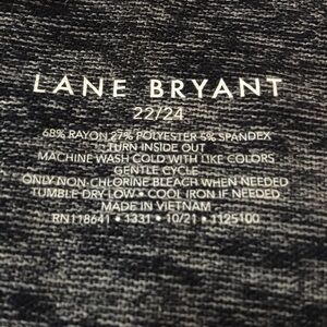 Lane Bryant women’s plus size 22–24 pull on top. Can be worn as off shoulder. Elastic hem. Long sleeves. Laid flat armpit to armpit measures 27 inches across and is 24 inches long. Very soft and stretchy. Excellent preowned condition.