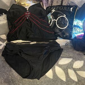 Womens plus size 2xl/3xl tankini swimsuit /bathing suit 3 piece black nwt/nwot