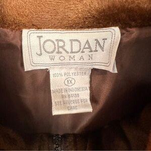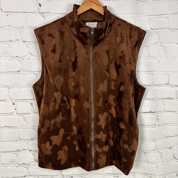 Jordan Vest Womens 1X Brown Plus Size Full Zip Front Sleeveless Faux Fur Burnout
