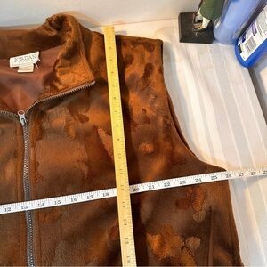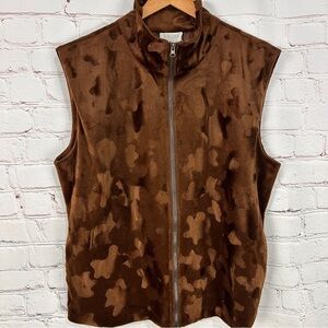 Women’s plus size Vest 1X Brown Full Zip Front Sleeveless Faux Fur Burnout