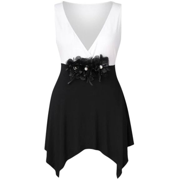 Rosegal Plus Size Women’s Top Two Tone Flower Handkerchief Top Summer Pearl Lolita Plunging Neckline Sleeveless Tank size 14. New with tags. Cross posted. FCFS.
