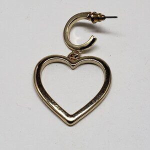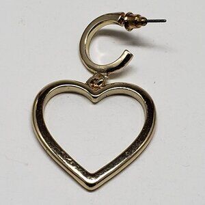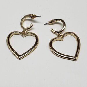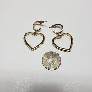 A beautiful design of a pair of polished Gold-tone Heart drop dangle Earrings. Self pulls Item, New without tag