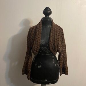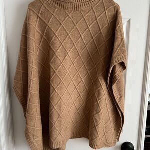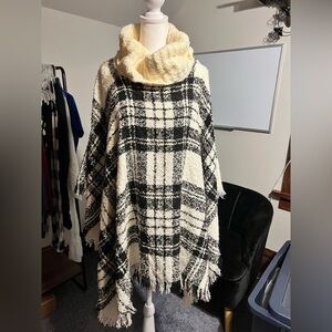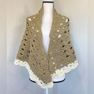 Gorgeous shawl can be worn 2 ways; v-neck or straight. Very soft: gently loved; well cared for and hand washed. Approximate Measurements: length is 36” from shoulder to lowest point of V at hemline. From edge of shoulder at neckline to fringe at the wrist: 26”