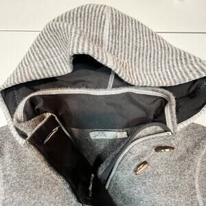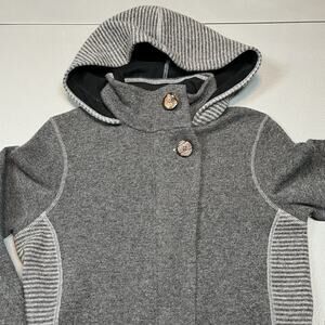 Womens PRANA Kari Gray Wool Blend Hooded Full Zip Sweater Coat Size Small with Pockets