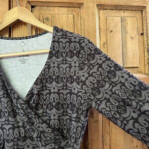 Women's prAna Small Gray Dress 3/4 Sleeve V-Neck Faux Wrap Printed