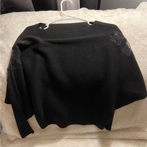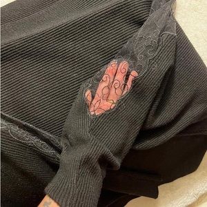 It looks fab. It has net on the arm as shown in the pictures. Warm in winters. Worn it just once.