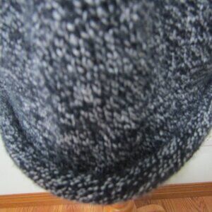 or layered with a turtleneck. Machine washable. Roll hem and cuffs A great pairing with leggings. Navy/white variegated yarn. Measures 50" finished chest, 30" from neck to hem, 20" sleeves .