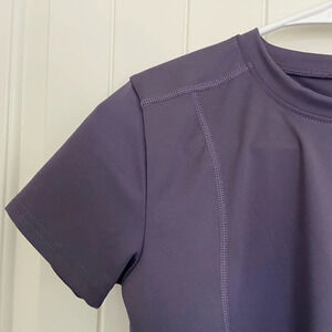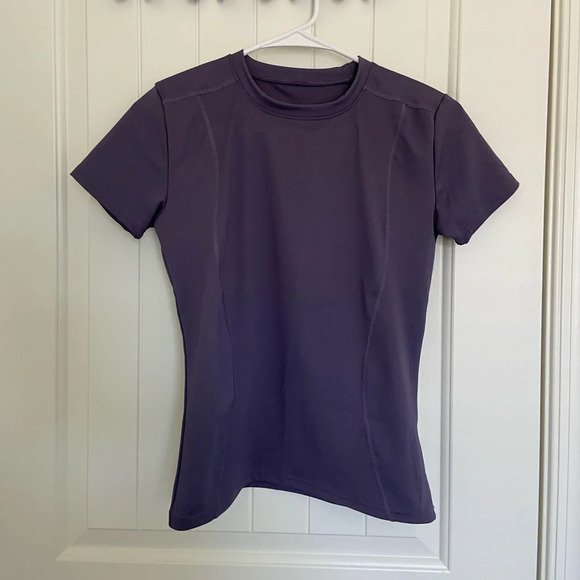 Women’s activewear top. Shirt is purple & made of active material. No brand tagged, but size medium. Smoke free home!