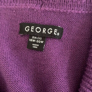 Women’s. George. Purple colored open front sweater. Long sleeve. Preowned condition. No stains/tears. Size 2XL.