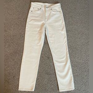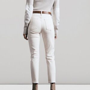 Rag and bone straight, high rise, ankle cigarette Nina jeans. Size 25. More off white to cream in color. Stock photo is more white.