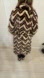 Stay warm and stylish with this luxurious real mink fur coat featuring a striking chevron pattern. The rich brown and cream colors add a touch of elegance to any outfit.