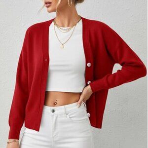 Women's red V Neck Long Sleeve Open Front Chunky Cardigan Fall Knitted