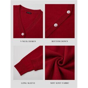 SEO Keywords: Red chunky cardigan, fall knit sweater women, open front cardigan, V-neck long sleeve sweater, cozy fall knitwear, women’s red cardigan, trendy fall outfits women
