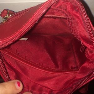 Very cute can't fit a wallet a phone and little things like that comes in handy! Its almost a marroon color