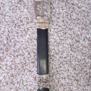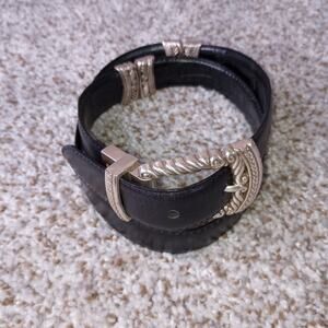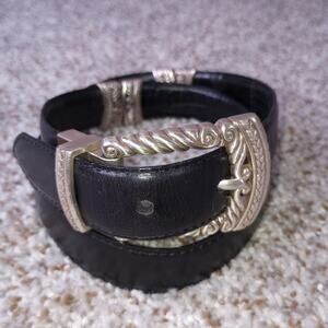 Women's reversible belt. Smooth black on one side and reptile skin texture on other.