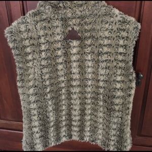 Women's fur vest. Reversible to Charcoal grey fleece. Cool buttons. There is no size in it. It runs like a Med. I'm a 34 B chest and this is too big for me. Similar to J Jill