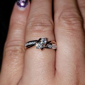 2 diamonds with sterling silver and rose gold and diamond band. Paid $200 asking $70
