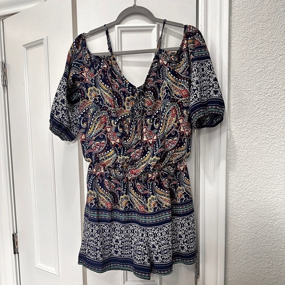 Women’s rompers City triangle cold shoulder paisley romper size L