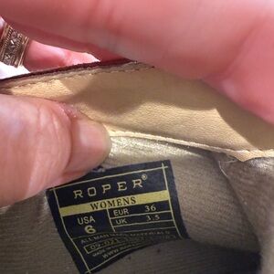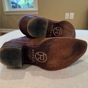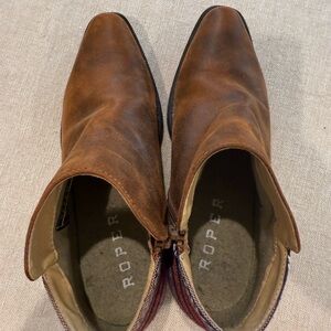 Chic brown Roper ankle boots with vibrant patterned back. Excellent preowned condition women’s size 6