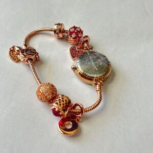 Women’s ruby bracelet watch with crystal beaded rose gold NEW
