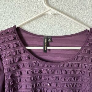 Women’s sheer Purple Textured Women's Top with rhinestones whimsy goth L