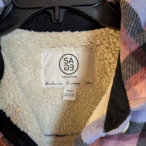 Cute and comfy flannel shirt jacket. Full sherpa lining.