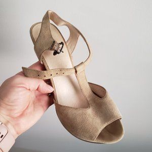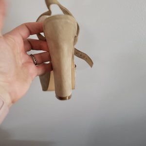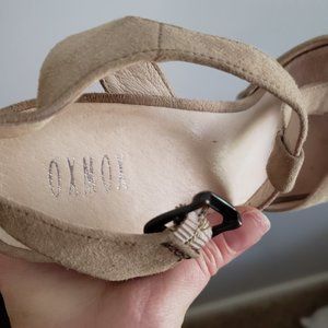 Beige Suede Leather sturdy platform chunky heels. Italian brand OXMOX. Limited collection. Unbelievably sexy. Look at all the details in the photos Slightly worn but great condition! No box, please see pictures for details, Sold "as is "..